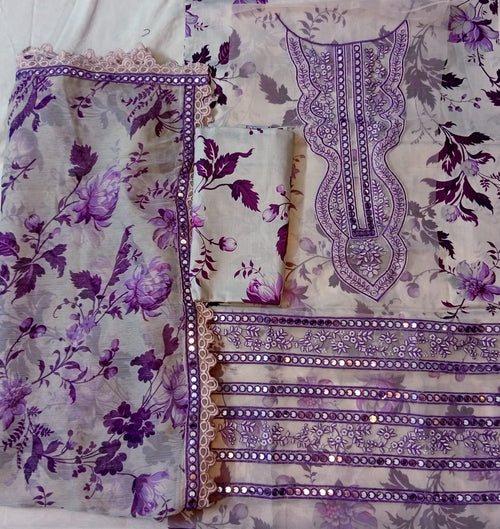 BRIGHT VIOLET 3 PIECE SUIT LAWN WITH CHIFFON READY TO WEAR DUPATTA AND PATCHES