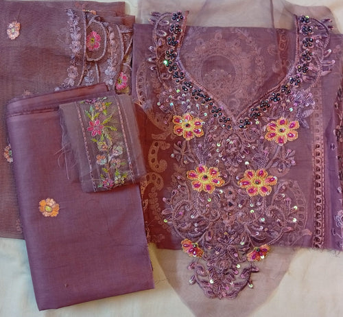 DAMSON COLOUR LAWN SUIT ORGANZA EMBROIDERY PATCHES READY TO WEAR DUPATTA